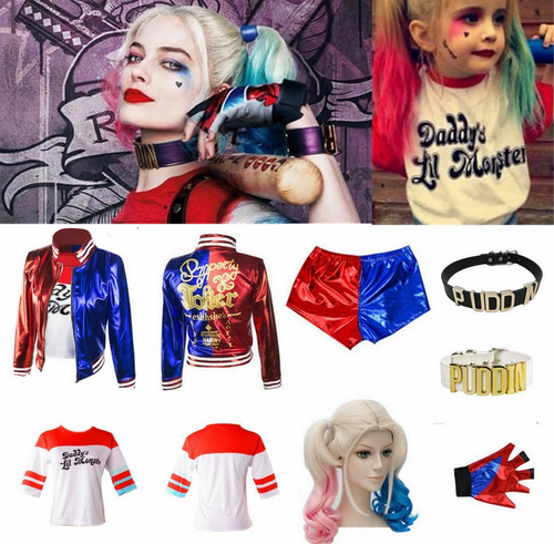 Damen Kinder Harley Quinn Suicide Squad Perucke Jacke Shirt Set Karneval Kostum from cdn.karneval-megastore.de